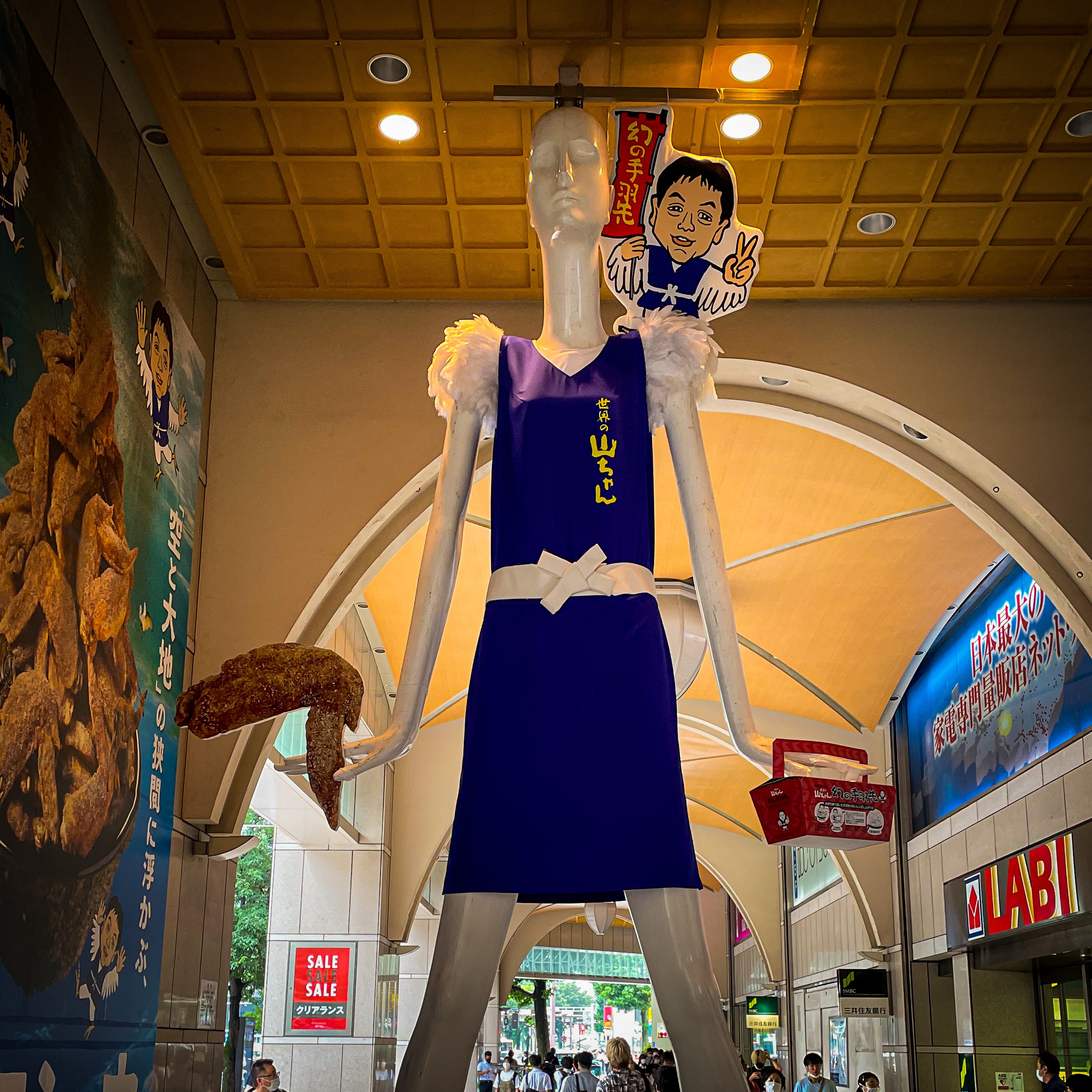 1973年名鉄百貨店セブン館のオープン一周年を記念して設置された季節に合わせて服や水着に着替える身長6m10cmの巨大なマネキン。